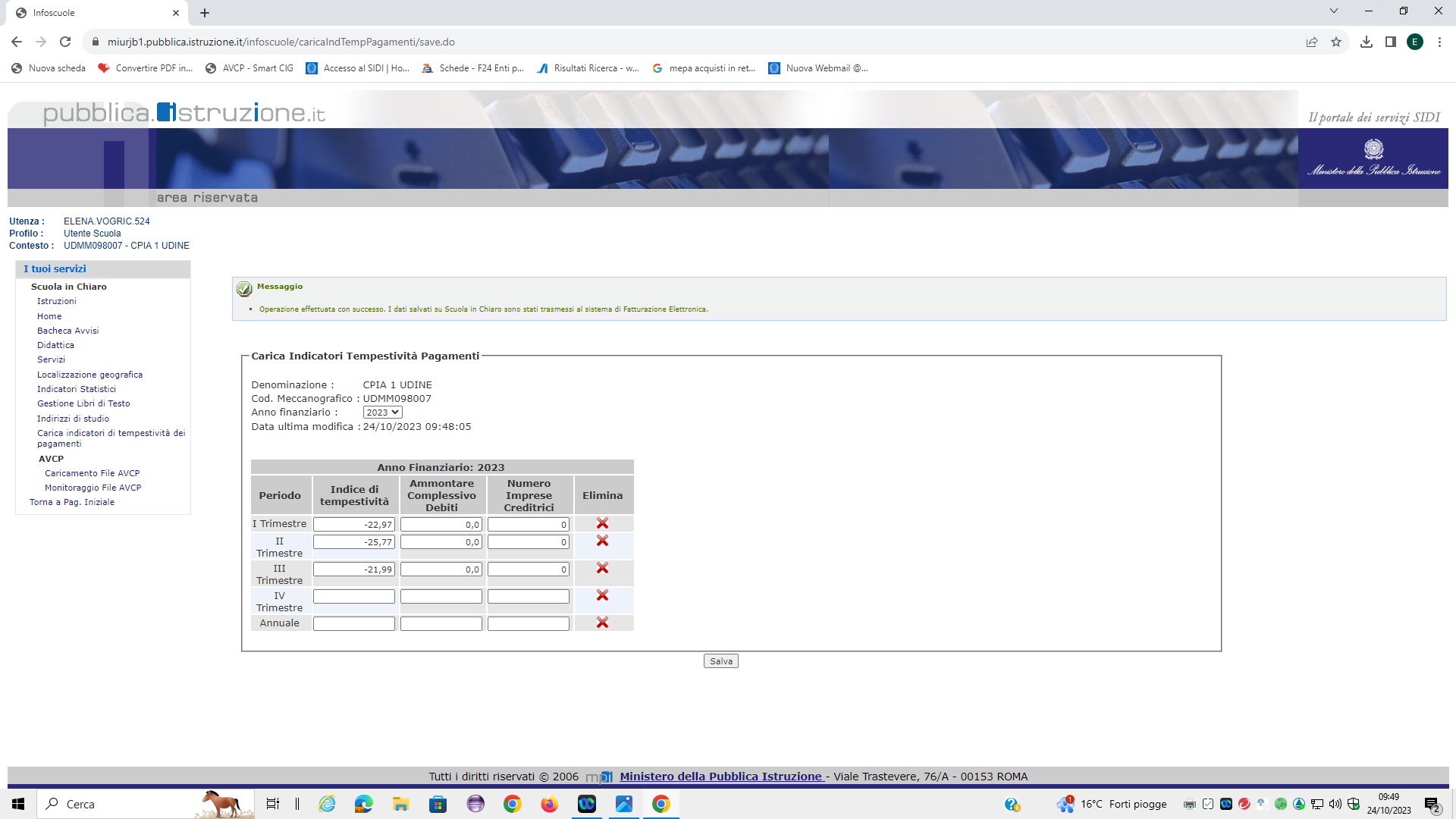 COMUNICAZIONE - INDICE DI TEMPESTIVITA' DEI PAGAMENTI E RIC. DEBITI 3° TRIM. 2023